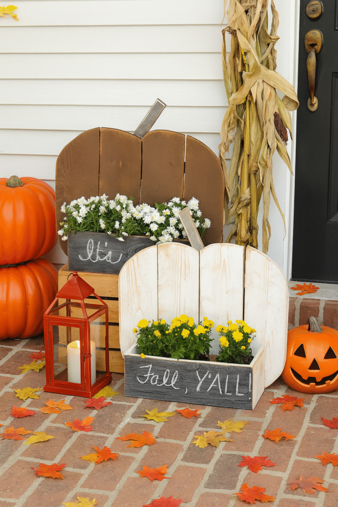 - Make it stable – Top-heavy displays tip over easily; test with actual mums/pumpkins