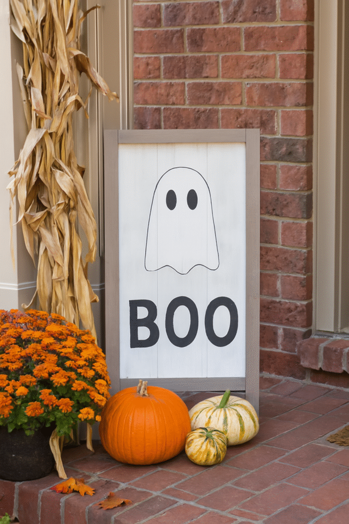 This freestanding sign combines frame construction with decorative panels, teaching advanced joinery while creating an impressive porch centerpiece. The support leg system makes it stable enough for windy fall weather.