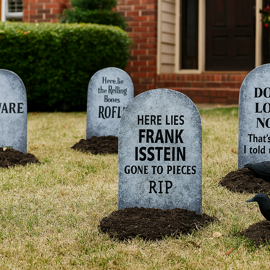 - Weather-resistant everything – Use exterior materials or tombstones won’t survive October